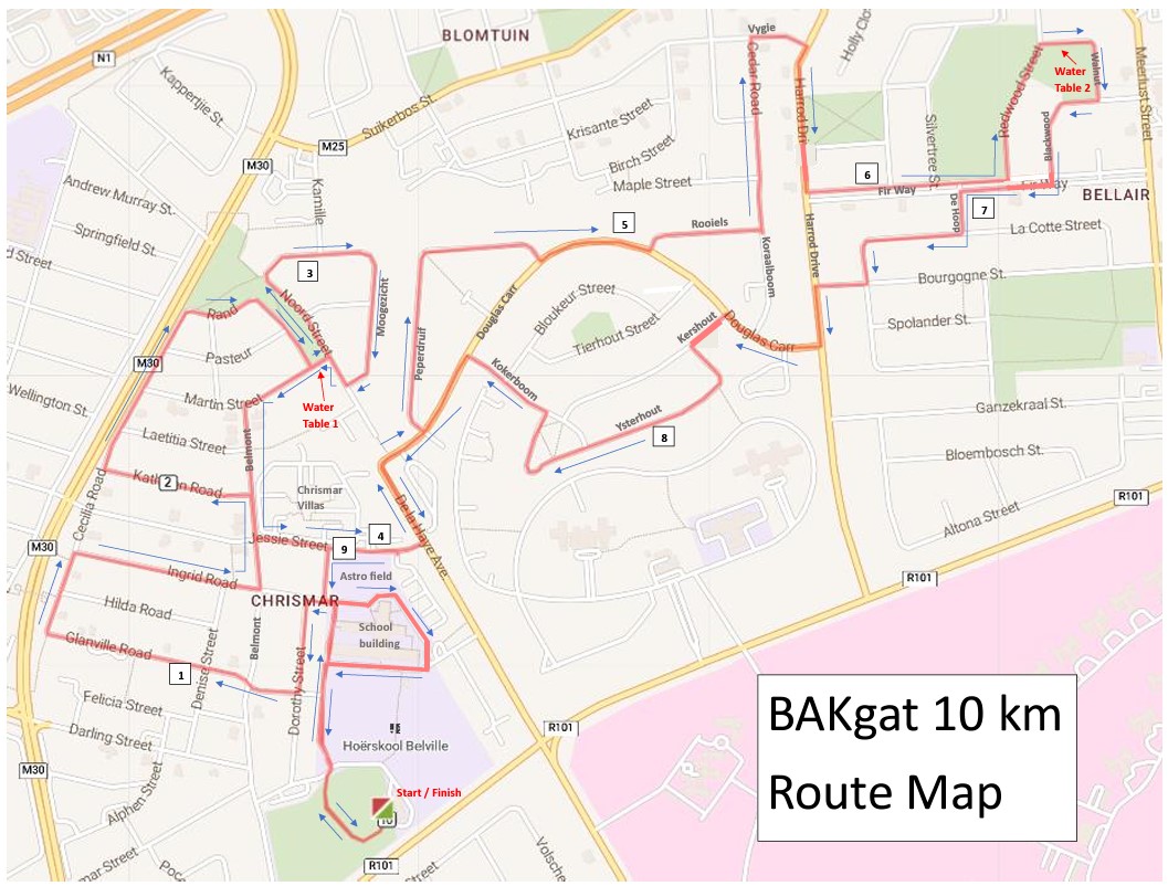 Dates are not confirmed yet.The 2026 BAKgat 10km will take place on, or close to 10 Oct 2026. Extact date and time to be confirmed. The event will take place at the Hoërskool Bellville High School, Paratus Ave, Chrismar in Bellville, Western Cape. Distances available include 10km and 5km races.