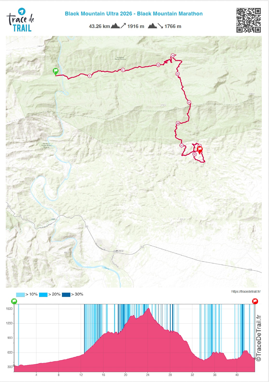 The 2026 Black Mountain Ultra will take place Saturday, 25 April 2026 from 05h00 starting at mulitple locations per distance and finishing at The Retreat at Groenfontein in Calitzdorp, Western Cape. Distances available include 73km, 43km and 19km races.