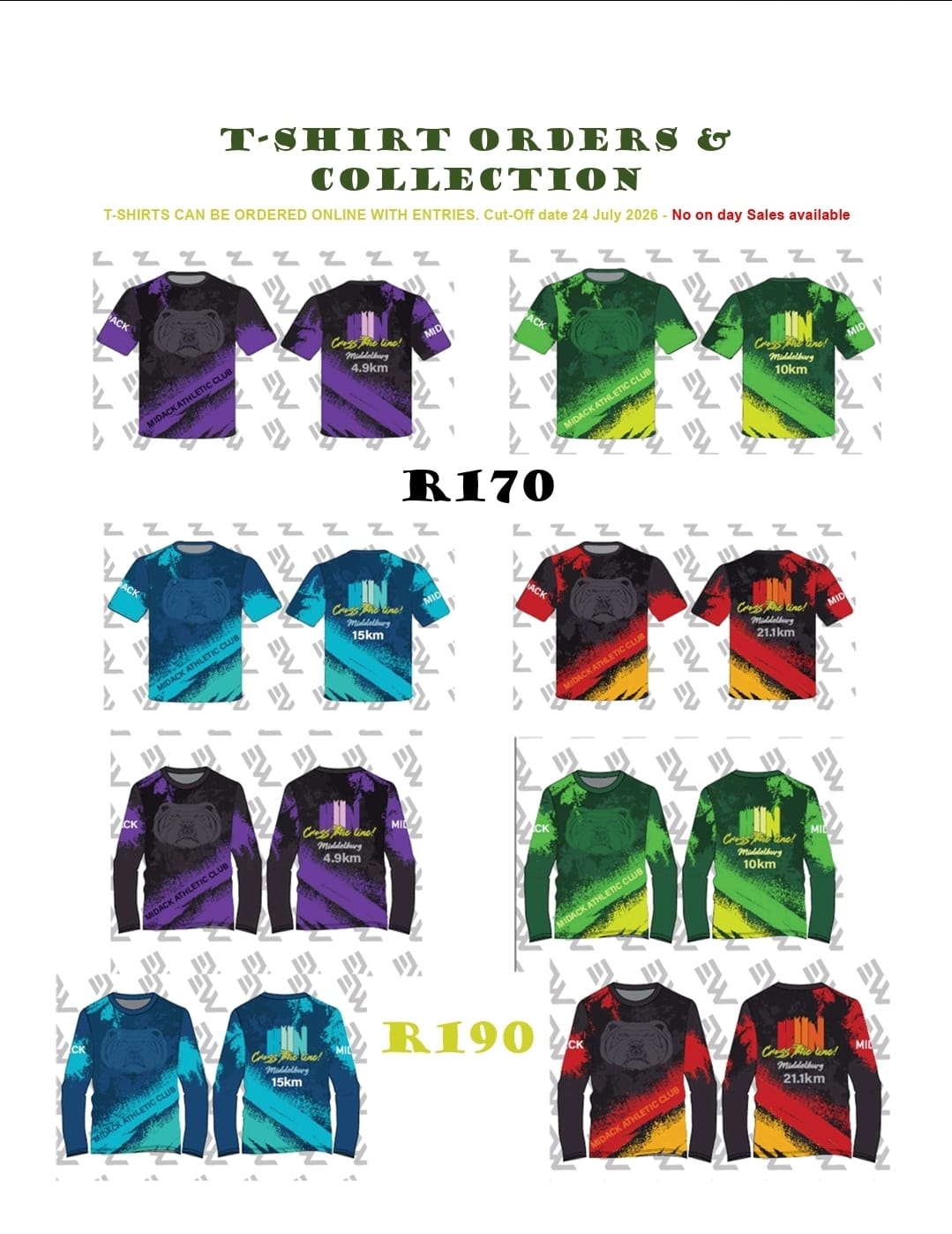 The 2026 Cross the Line Half Marathon Middelburg will take place Saturday, 22 August 2026 from 07h00 at the Steelcrest High School, 4 Springbok Ave, Kanonkop in Middelburg, Mpumalanga. Distances available include 21.1km, 15km, 10km and 4.9km races.