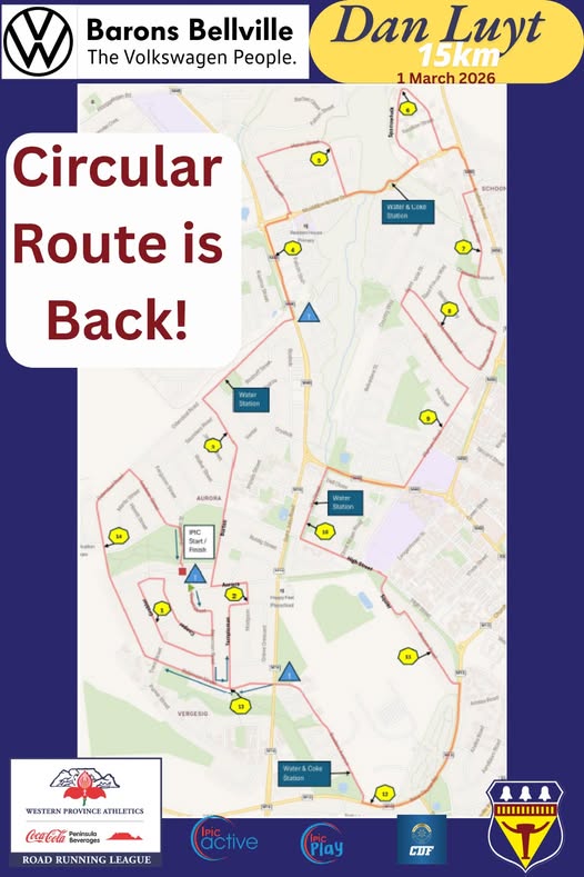 Event ran 1 day agoThe 2026 Dan Luyt 15km Road Race took place Sunday, 1 March 2026 from 06h00 at the Ipic Aurora Shopping Centre, Patterson Street, Aurora in Durbanville, Western Cape. Distance of the race is 15km.