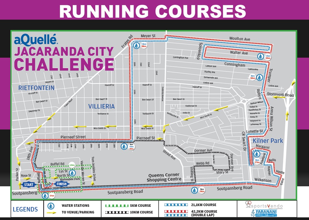 Dates are not confirmed yet.The 2026 Jacaranda City Challenge will take place on, or close to 7 Nov 2026. Extact date and time to be confirmed. The event will take place at the Rietondale Park, cnr of Soutpansberg Road & Van Der Merwe Street in Pretoria, Gauteng. Distances available include 42.2km, 21.1km, 10km and 5km races.