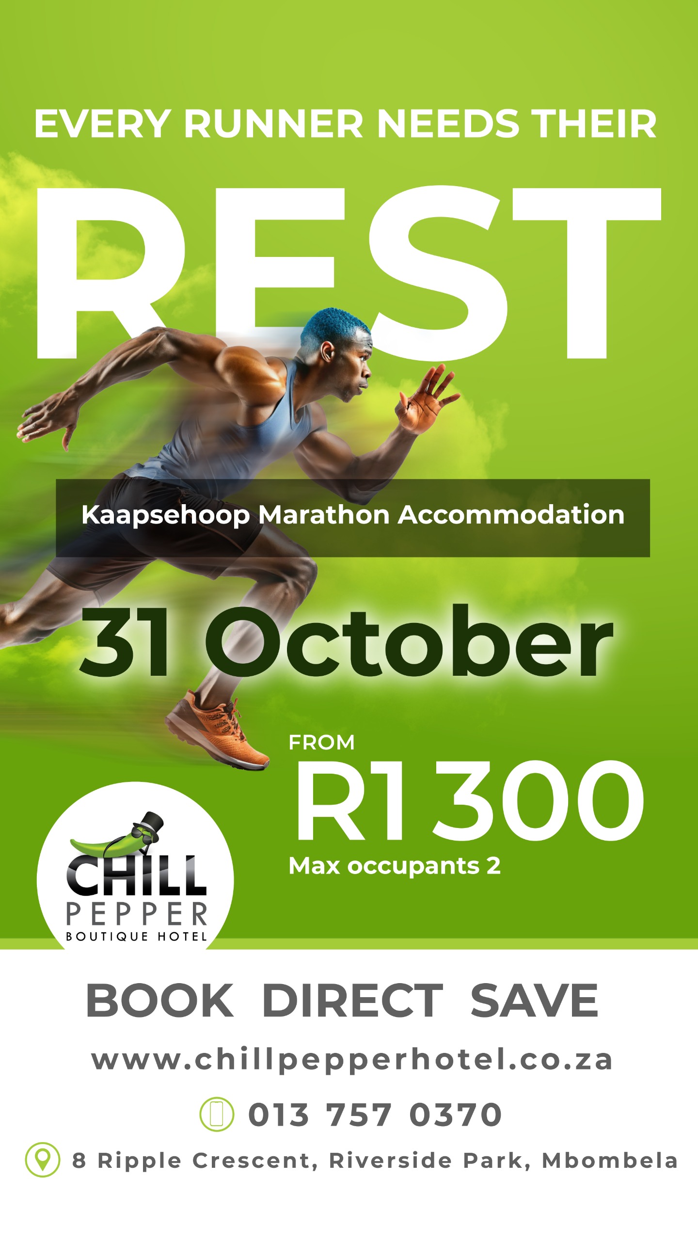 The 2025 Kaapsehoop 3-in-1 Marathon will take place 1 Nov 2025 from 05h30 starting at Kaapsehoop, Nelspruit Road and finishing at Mbombela Stadium in Mbombela, Mpumalanga. Distances available include 42.2km, 21.1km and 10km races.