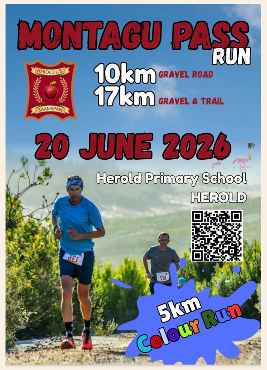 The 2026 Montagu Pass will take place Saturday, 20 June 2026 from 09h00 at the Herold Primary School in Herold, Western Cape. Distances available include 17km, 10km and 5km races.