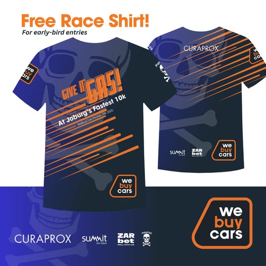 The 2025 We Buy Cars Pirates 10k will take place 16 Nov 2025 from 07h00 at the Pirates Club, Greenside in Johannesburg, Gauteng. Distance of the race is 10km.