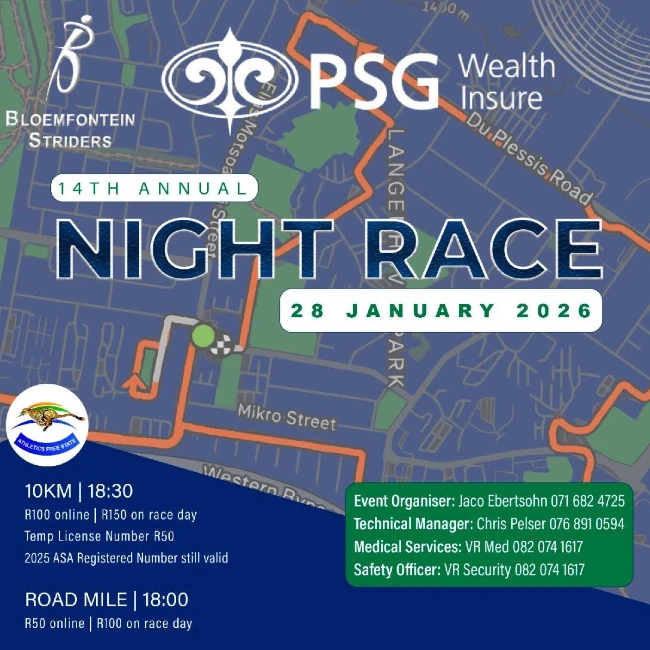 Bloemfontein Striders Night Race 2026